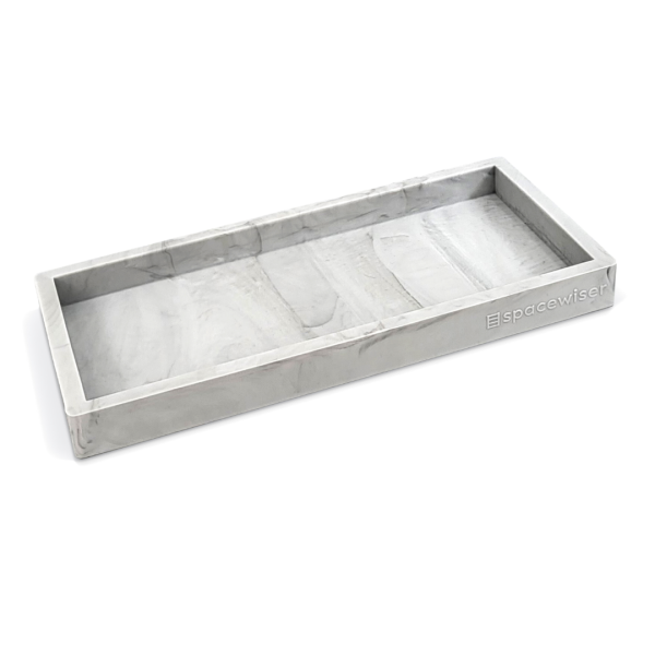 Spacewiser original flexible silicone tray in marble design (white and gray in freeform design).